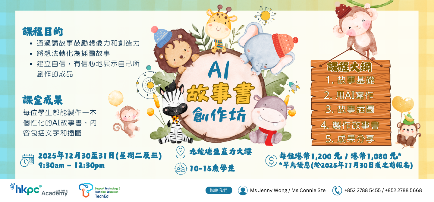 本工作坊旨在激發參加者的想像力和創造力,透過AI工具將想法轉化為獨特的插圖故事。課程涵蓋故事基礎、AI寫作、故事插圖製作及故事書排版等環節。參加者將學習如何運用AI生成文字和圖像,並將其整合為一本完整的數位故事書。課程鼓勵參加者展示自己的作品,建立自信心。