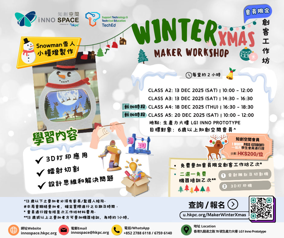 名額有限,立即報名: u.hkpc.org/MakersWinterXmas