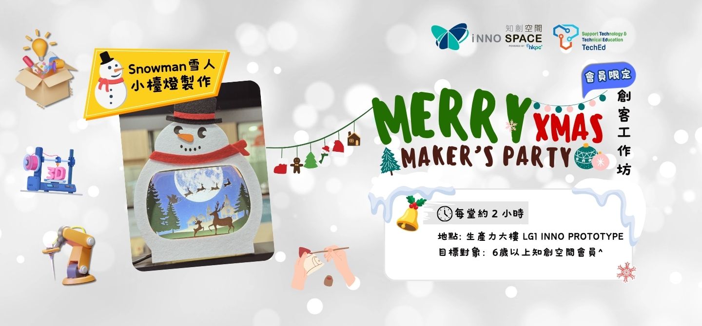 圣诞节即将来临,不如到知创空间 Inno Space 学习制作可爱的圣诞雪人小台灯吧!学员将在工作坊中学习激光切割和 3D 打印的应用,还可以亲手制作独特的小台灯装饰,为圣诞节增添更多乐趣与节日气氛!
